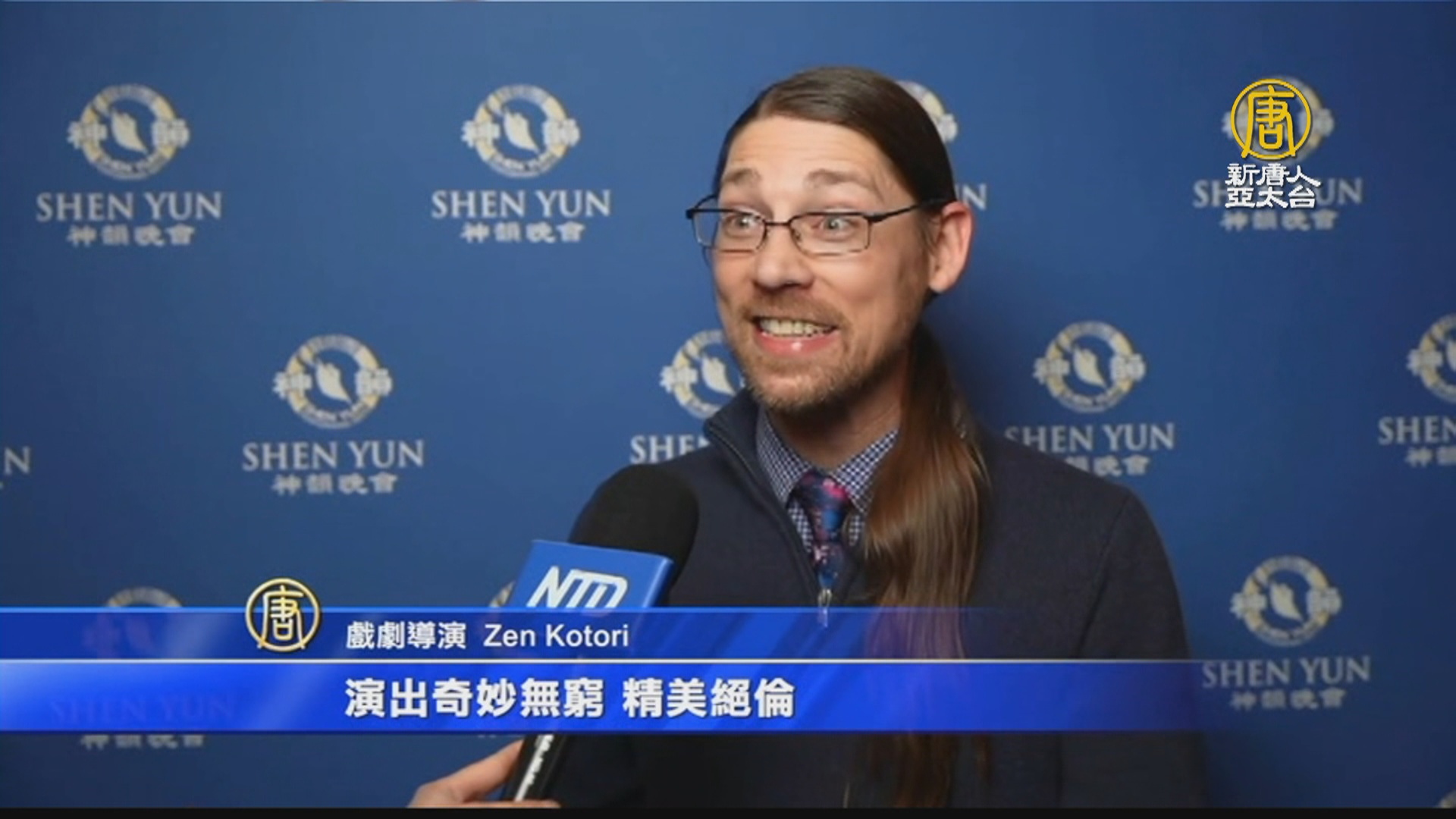 戲劇導演 Zen Kotori:「神韻給了我希望和啟發。我想以劇院的角度來談對神性的理解,當所有事物都有神性,作為演員如何扮演好角色?在舞台上,我相信所有人都是好人。當我觀看神韻時,我看到演員們真正很好,相當傑出。讓我相信只要信神,任何人都能舞動出美,而每個觀眾都能從演出中得到啟示。」