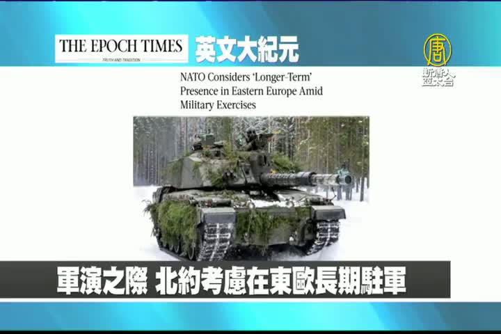 【新唐人亞太台 2022 年 02 月 10 日訊】首先來看到美國大紀元英文版報導:東歐軍演之際,北約秘書長表示,考慮在東歐長期駐軍。
