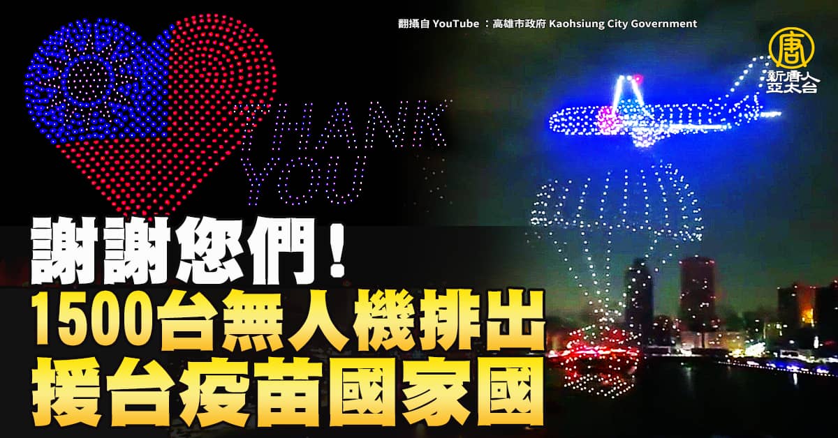 謝謝您們!1500台無人機排出援台疫苗國家國旗