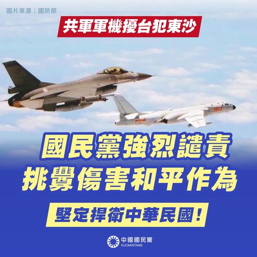共機疑似侵入東沙島領空 國民黨強烈譴責