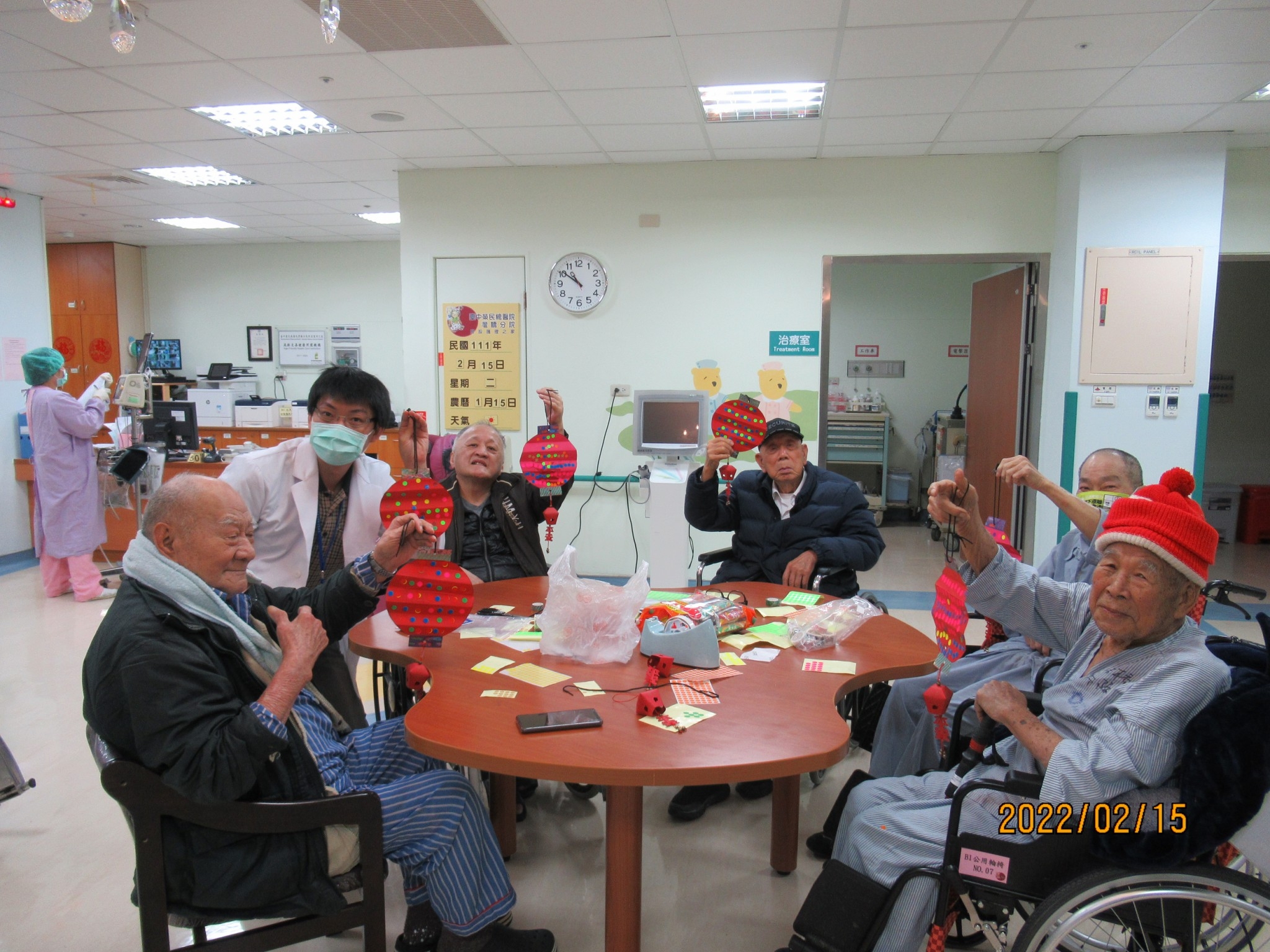 【新唐人亞太台 2022 年 02 月 15 日訊】元宵節又稱「上元節」、「小過年」,為慶祝元宵節,台中榮民總醫院嘉義暨灣橋分院,為讓護理之家住民及同仁也能感受元宵節團圓的氛圍,15日特別由護理之家舉辦「歡喜慶元宵 手作DIY燈籠趣」活動,由護理師及社工們引導住民們製作有趣應景的創意燈籠,為醫院增添不少過節氣氛。
