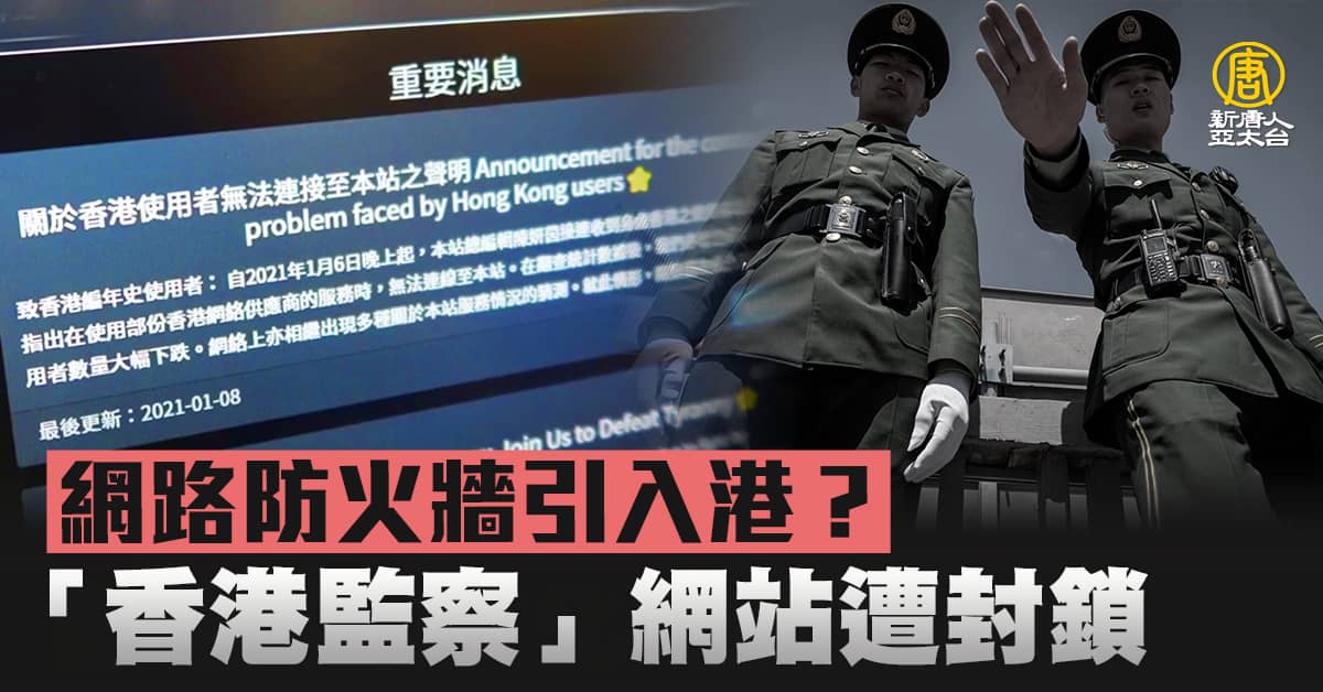 網路防火牆引入港?「香港監察」網站遭封鎖