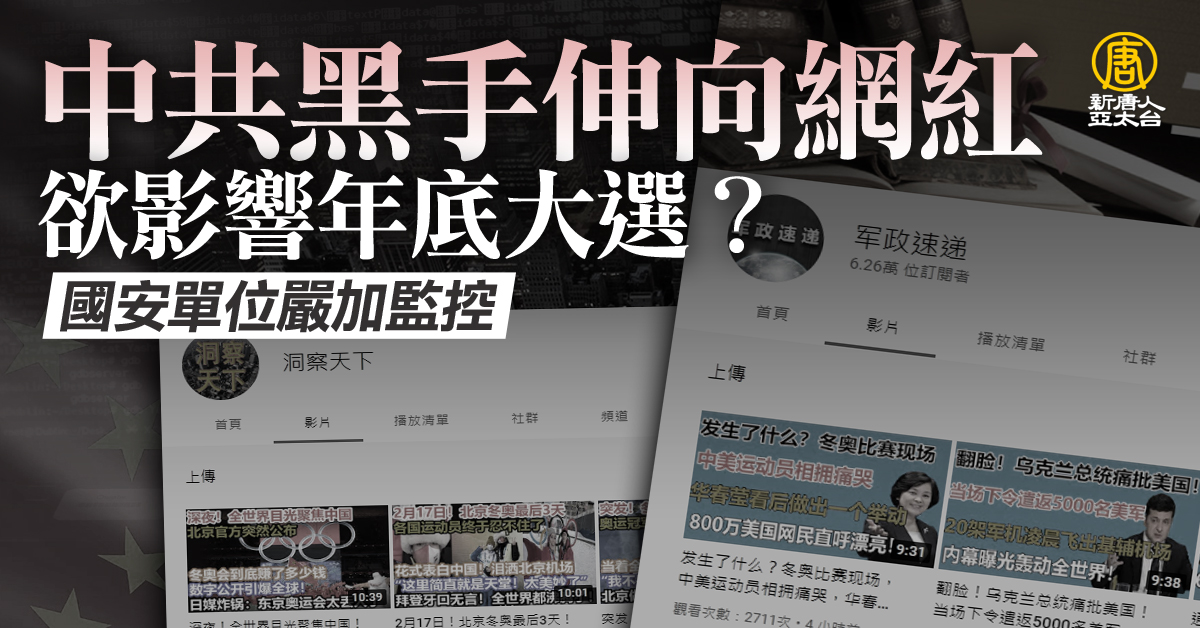 中共黑手伸向網紅 欲影響年底大選?國安單位嚴加監控