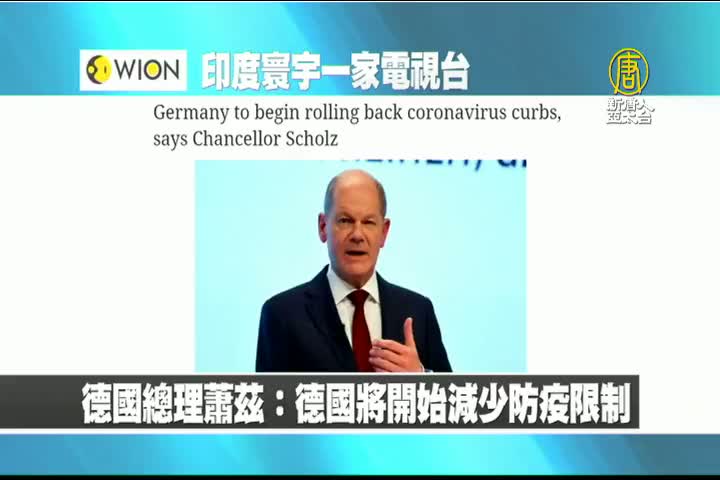 【新唐人亞太台 2022 年 02 月 18 日訊】最後是印度寰宇一家電視台報導:德國總理蕭茲表示,由於德國感染率下降,將開始逐步取消防疫的限制。