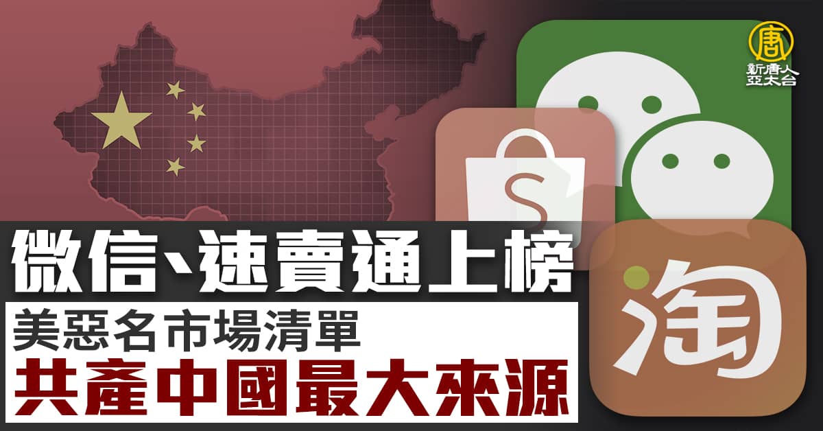 美惡名市場清單 共產中國最大來源 微信、速賣通上榜