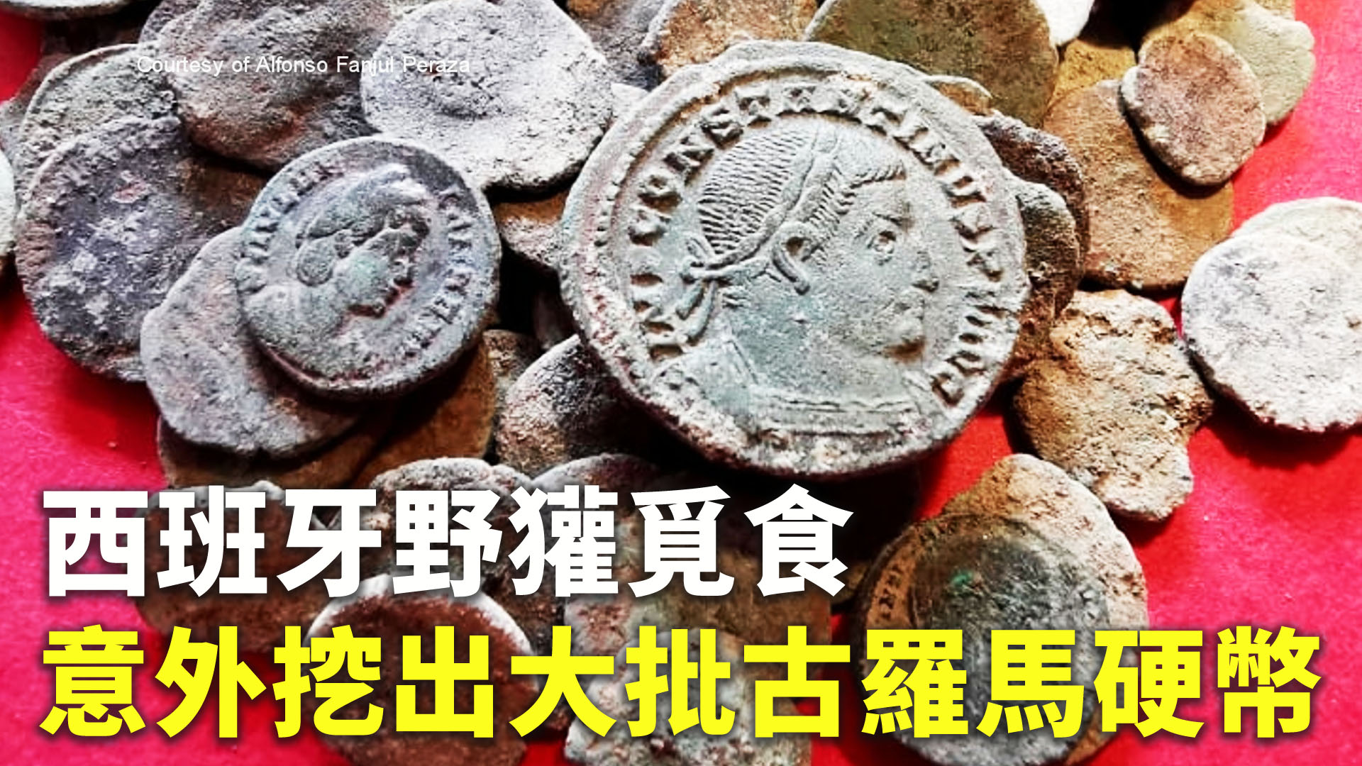 【新唐人亞太台 2022 年 02 月 19 日訊】考古學家在西班牙北部的一個野獾的巢穴中,意外發現了藏了上百枚古羅馬時代的硬幣。他們推測,可能是野獾為了在惡劣的天氣中尋找食物,鑽進洞窟中拚命地挖土,才意外挖出這些硬幣。