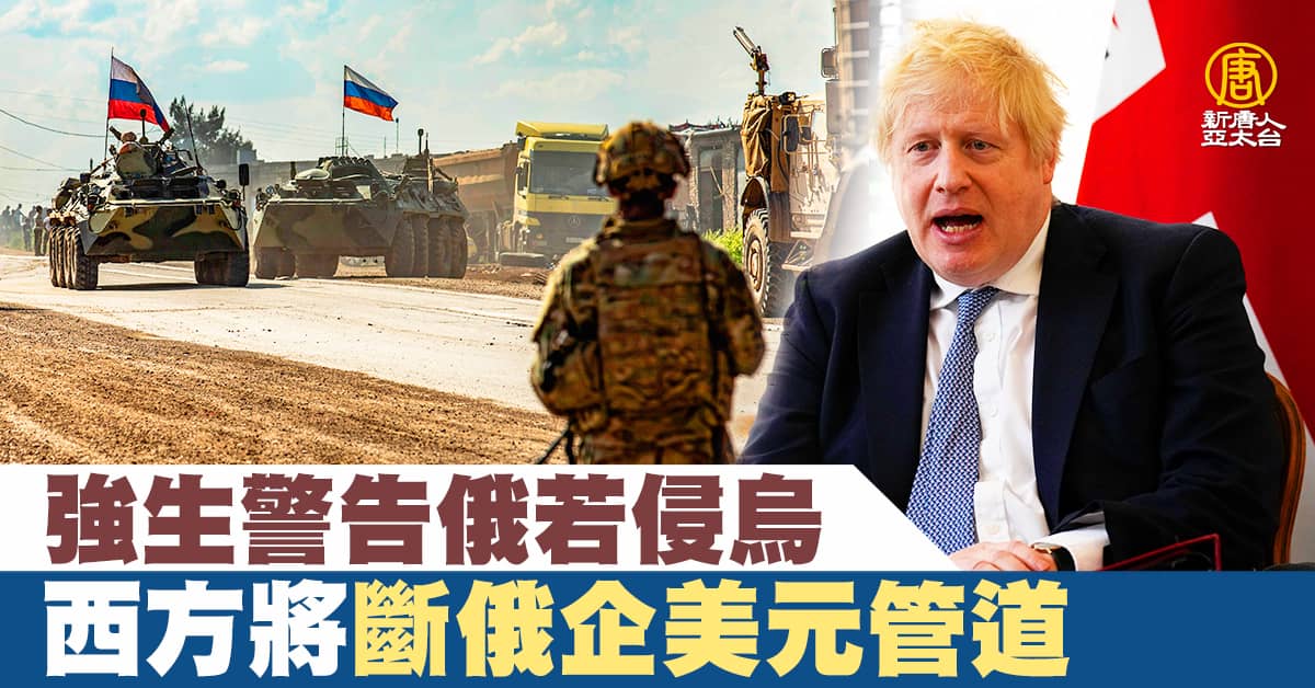 【新唐人亞太台 2022 年 02 月 20 日訊】英國首相強生(Boris Johnson)今天告訴英國廣播公司(BBC),倘若克里姆林宮下令入侵烏克蘭,美國和英國將尋求切斷俄羅斯企業取得美元和英鎊的管道。