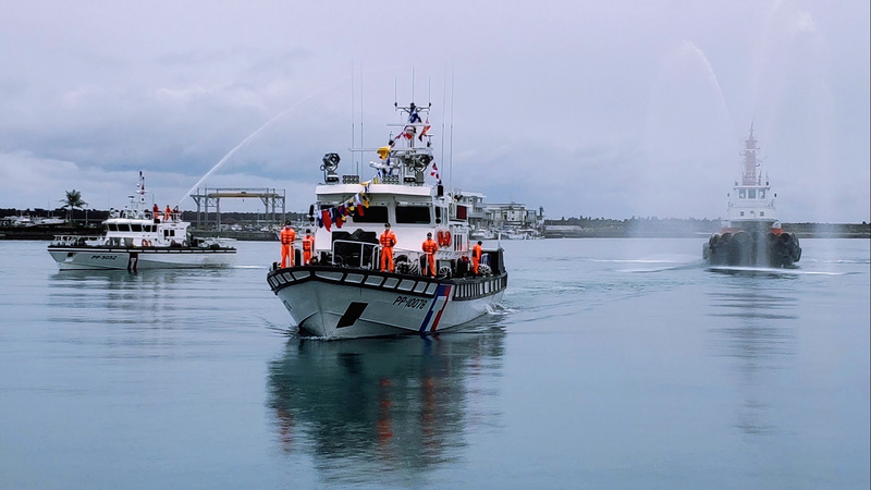 海巡署艦隊分署第六海巡隊發布新聞資料表示,分隊長薛鈞文率「強化海巡編裝發展方案」新造10078艇航抵花蓮港,由花蓮海巡隊安排10056艇及5052艇於港外噴水迎接舉行接艇儀式。