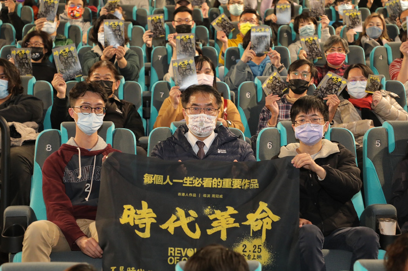 紀錄片「時代革命」22日晚間在南紡威秀影城二館舉辦台南首映會,市長黃偉哲(前中)出席支持,祝福香港早日拾回往日活力。(圖/台南市政府提供)