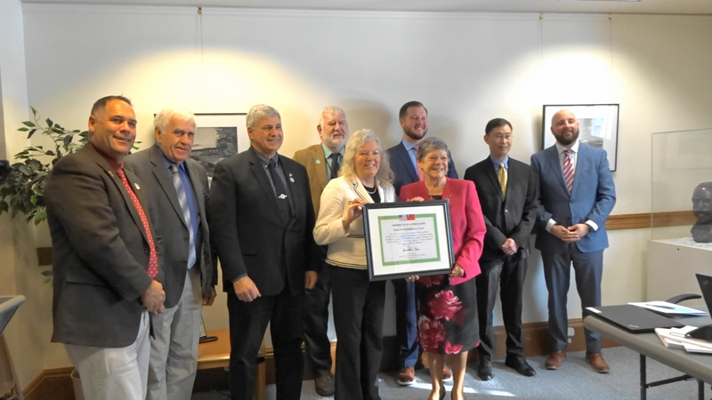 孫儉元隨後轉往議事廳,由議長傑克森(Troy Jackson)唱名介紹,全體州參議員起立鼓掌歡迎。