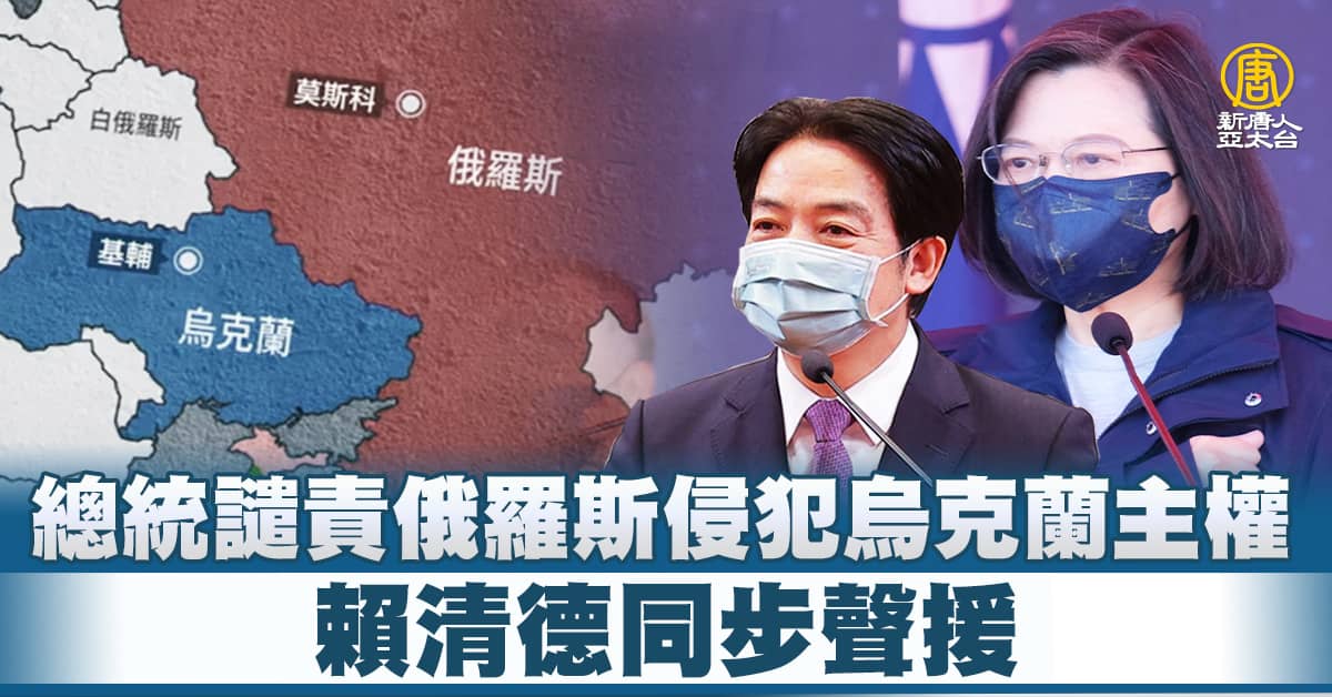總統譴責俄羅斯侵犯烏克蘭主權 賴清德同步聲援