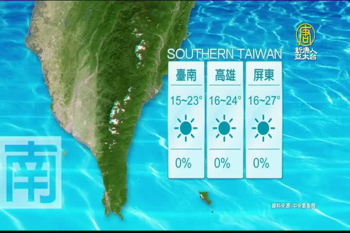 2022-02-25 08:49:35歡迎您收看2月25日的早安新唐人,我是趙庭譽,先來帶您關心天氣。連續多天又濕又冷,終於雨勢趨緩,今天冷空氣減弱,白天氣溫回升,東部、桃園以北地區有局部短暫雨,其他地區多雲到晴?;而二二八連假也會是好天氣,週六至下週一整體舒適溫暖,北部、東北部,高溫返回約20度,其他地區達25度,但提醒您,各地早晚溫差仍大,如果有安排長途旅行的觀眾朋友,還是要留意溫差。帶您一起來看到國際媒體重要訊息。