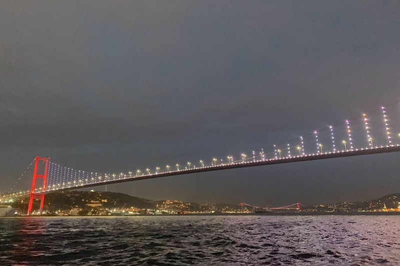 土耳其以「戰爭」稱俄羅斯揮軍烏克蘭,暗示可能限制俄羅斯軍艦從地中海進入黑海。圖為改名7月15日烈士大橋的第一博斯普魯斯大橋,攝於2021年12月11日。(圖/中央社)