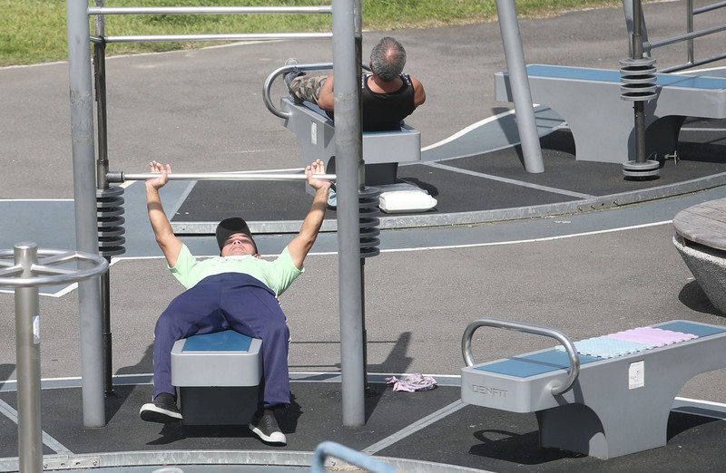 新增4例本土個案,分別為米迪幼兒園案增3名小學生染疫,宗教協會吃唱團群聚衍生設計師案新增1名確診。疫情好轉,圖為1日起至31日,民眾可免戴口罩運動健身。(圖/中央社)