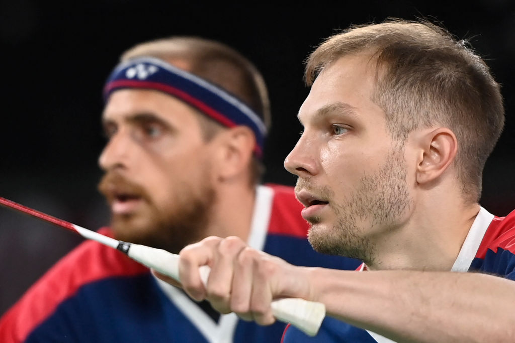 世界羽球聯盟宣布,針對俄羅斯總統蒲亭揮軍入侵烏克蘭,將禁止俄國與盟友白俄羅斯的運動員參加世界羽球聯盟比賽。圖為俄羅斯羽球選手Vladimir Ivanov(左)和Ivan Sozonov(右)。(圖/GettyIma1ges)