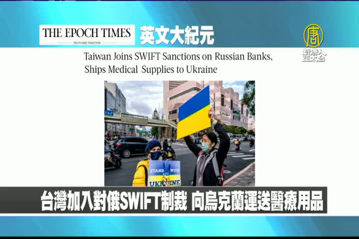 【新唐人亞太台 2022 年 03 月 02 日訊】首先來看到美國大紀元英文版報導:台灣政府加入對俄羅斯SWIFT金融制裁,並向烏克蘭運送醫療用品。