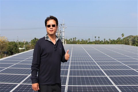 他身體好轉後,想起家裡有一塊閒置的農地,為了確定用途,便前去場勘,發現附近有部分農地已架設太陽能板等裝置,讓他產生了或許可從事再生能源產業的念頭,於是開始上網查找太陽能轉換率、再生能源發電等資料。