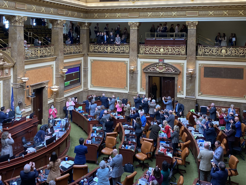 賴銘琪受邀到現場見證,當參、眾兩會於決議通過後全體議員起立鼓掌以示支持,賴銘琪率辦事處人員揮手答謝,場面熱烈。