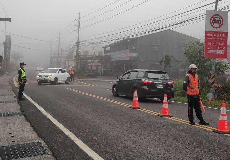 阿里山花季,星期例假日及清明節連續假期,將實施交通管制。(嘉義縣警察局提供)