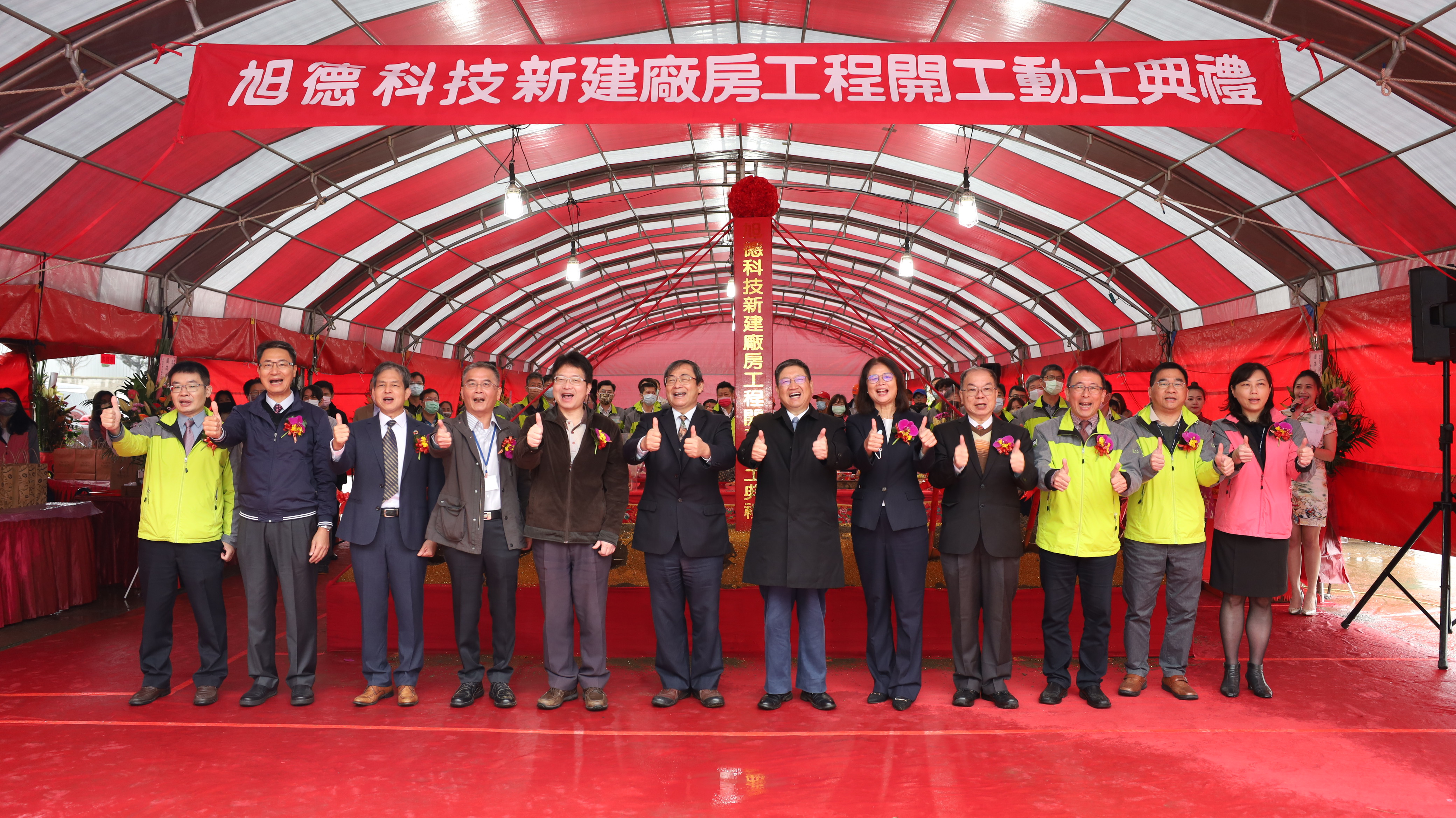 新竹縣長楊文科(左二)受邀出席旭德科技第四廠房動土典禮。(新竹縣政府提供)