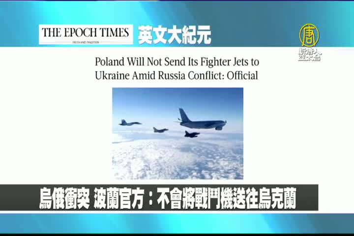 【新唐人亞太台 2022 年 03 月 08 日訊】首先來看到美國大紀元英文版報導:烏俄衝突,波蘭官方表示,不會將戰鬥機送往烏克蘭。