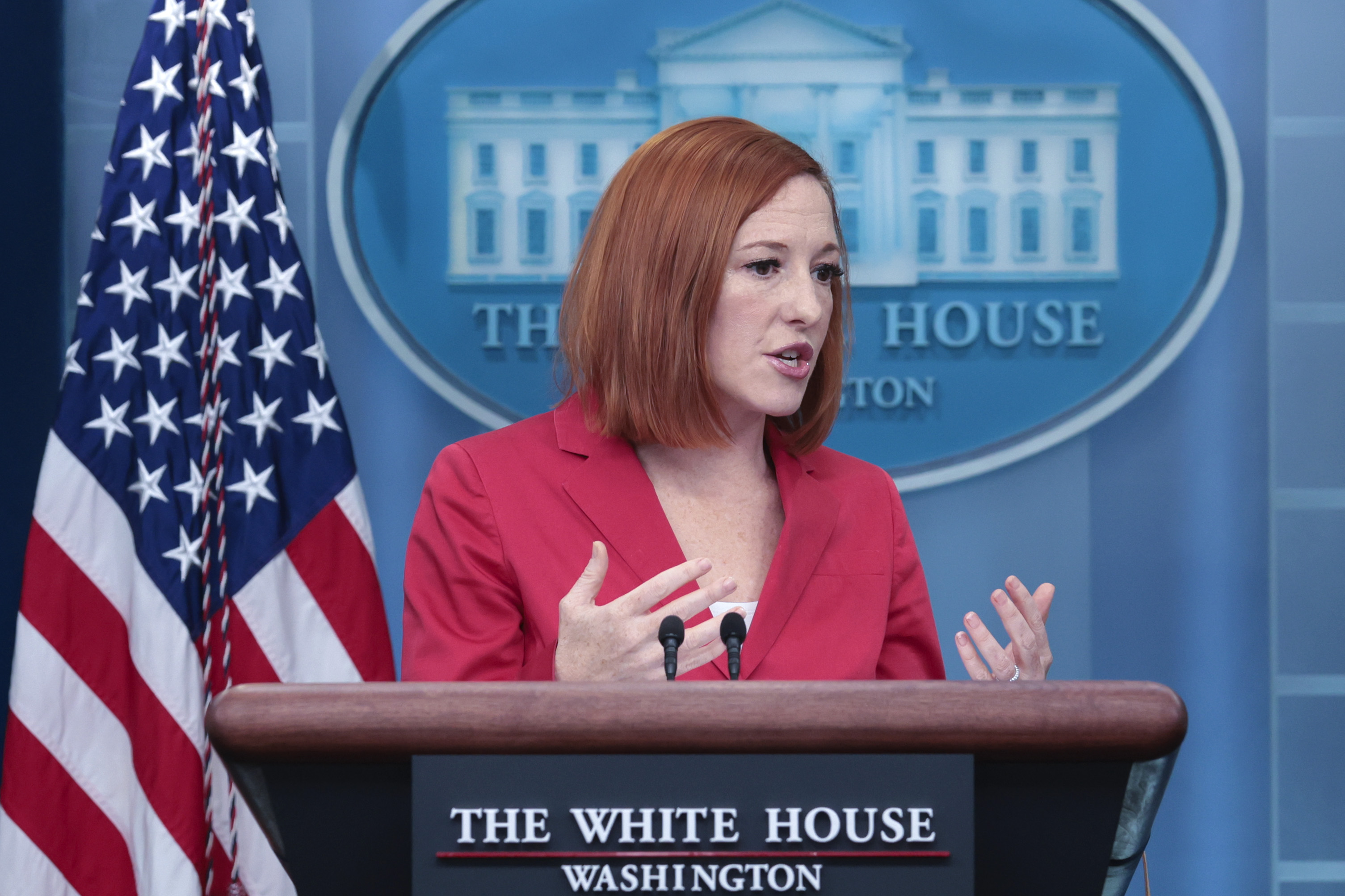 白宮發言人莎琪表示,因莫斯科入侵烏克蘭而對俄羅斯石油與天然氣進口祭出的禁令,都應該透過不同於與西方盟友同步制裁的角度來考量。(圖/GettyImages)