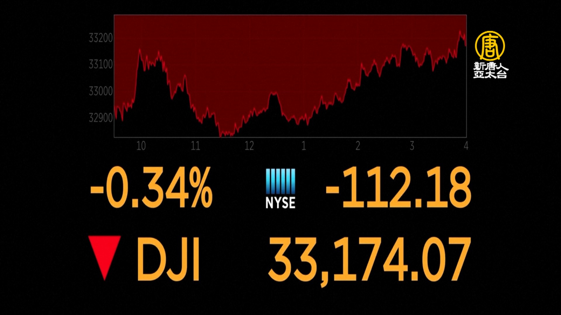 美股道瓊指數下跌 112.18 點,或 0.34%,收 33,174.07 點。