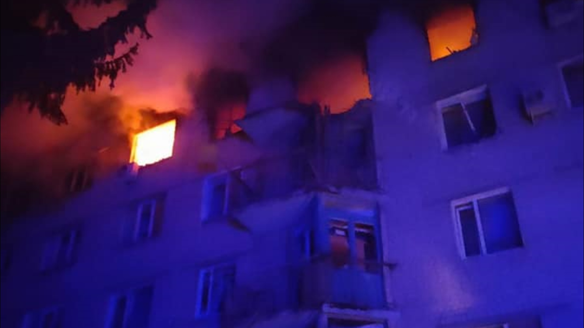 烏克蘭高階官員10日表示,俄羅斯飛機轟炸烏克蘭第2大城哈爾科夫的一個研究所,那裡有實驗性核反應爐,且附近的一間旅舍陷入火海。(圖/翻攝自FB@ДСНС України)