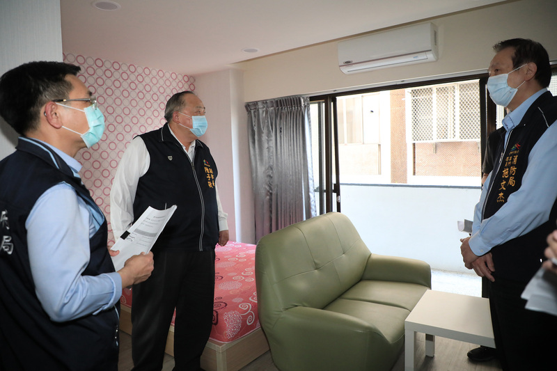 台中市興中街大樓註銷旅館登記後違規出租,日前火災釀死傷慘劇。台中市副市長陳子敬(左2)11日親自帶隊,針對3家已歇業旅館展開稽查,其中2家被發現有違規使用情形,依法開罰。(圖/中央社)
