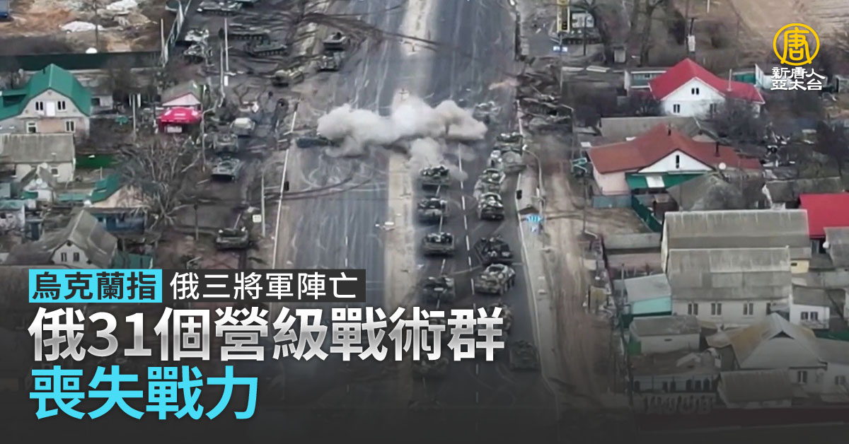 【新唐人亞太台 2022 年 03 月 12 日訊】俄羅斯的轟炸 擴大到烏克蘭西部城市,烏克蘭軍方宣布,擊斃俄國的軍團司令,這已經是烏方公布的第三名俄羅斯陣亡高階將領,另外,烏克蘭國防情報局長布達諾夫表示,俄軍已有31個營級戰術群失去作戰能力,目前,外界還無法獨立證實這些消息。