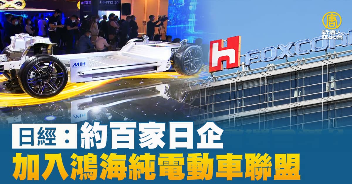 【新唐人亞太台 2022 年 03 月 13 日訊】日本經濟新聞12日報導,台灣鴻海精密工業所推動的純電動車(EV)共同開發聯盟,已知有約100家日本企業參與,是當初5倍之多,連日本豐田汽車關聯公司電裝公司等都加入。