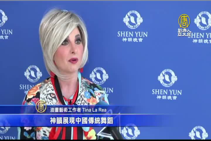 油畫藝術工作者 Tina La Rea:「我真為在中國看不到神韻感到難過。多麼美麗、優雅、充滿活力又訓練有素。神韻展現中國傳統舞蹈並與現代技術完美結合,真是優美的演出。神韻交響樂團很棒,舞台上的一切都在精準的時間點呈現,太棒了。服飾和色彩都很優美,演出中看到藍色的天堂。我愛他們舞動長袖的模樣。神韻真是令人歎為觀止,精美的藝術作品。」