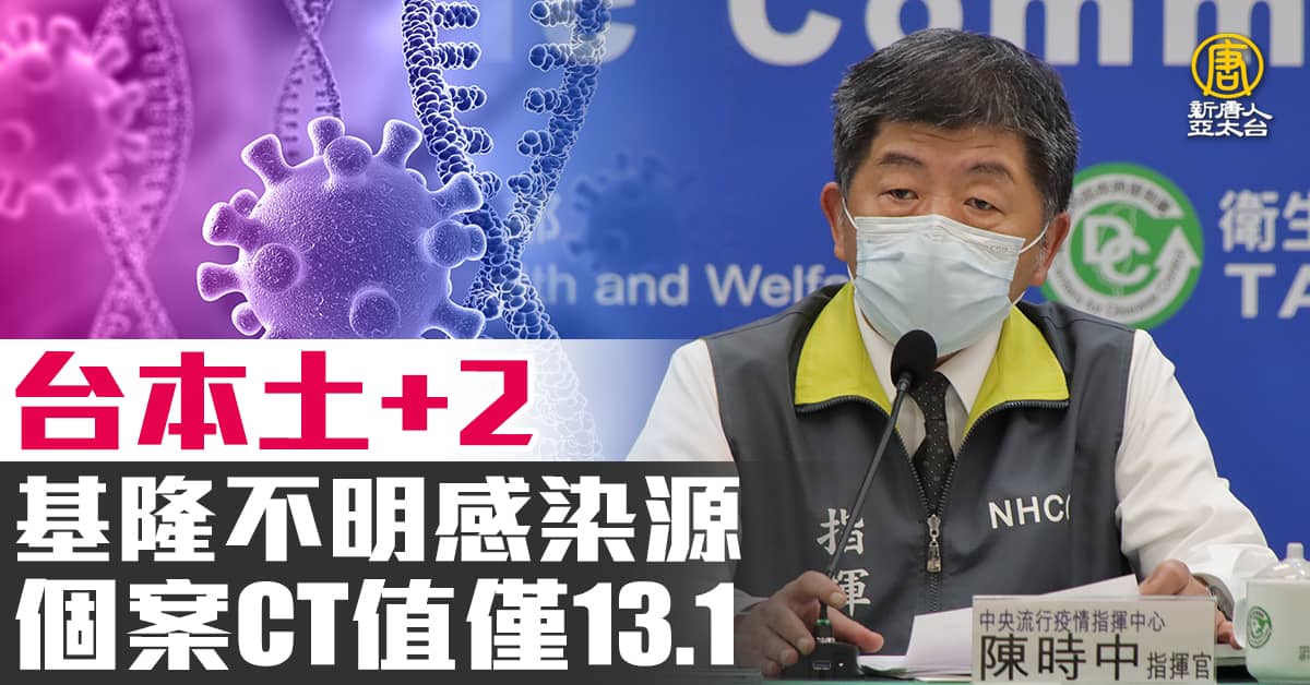 【新唐人亞太台 2022 年 03 月 14 日訊】台灣今天(14日)新增兩例本土個案,一例是雙北家庭群聚,另一例是基隆的感染源不明的單獨個案,出現症狀後曾經到醫院就診,後續因為持續發燒自行快篩呈現陽性,才就醫採檢確診,而個案因為剛發病,CT值相當低。