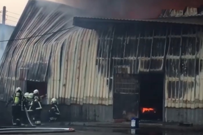伸港鐵皮工廠大火 彰化消防局出動27車搶救