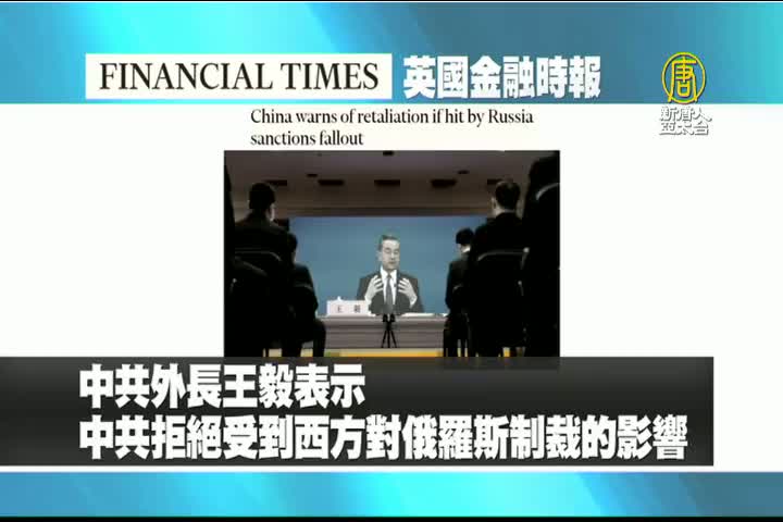 【新唐人亞太台 2022 年 03 月 16 日訊】接著來看到英國金融時報報導:中共外長王毅表示,中共拒絕受到西方對俄羅斯制裁的影響。