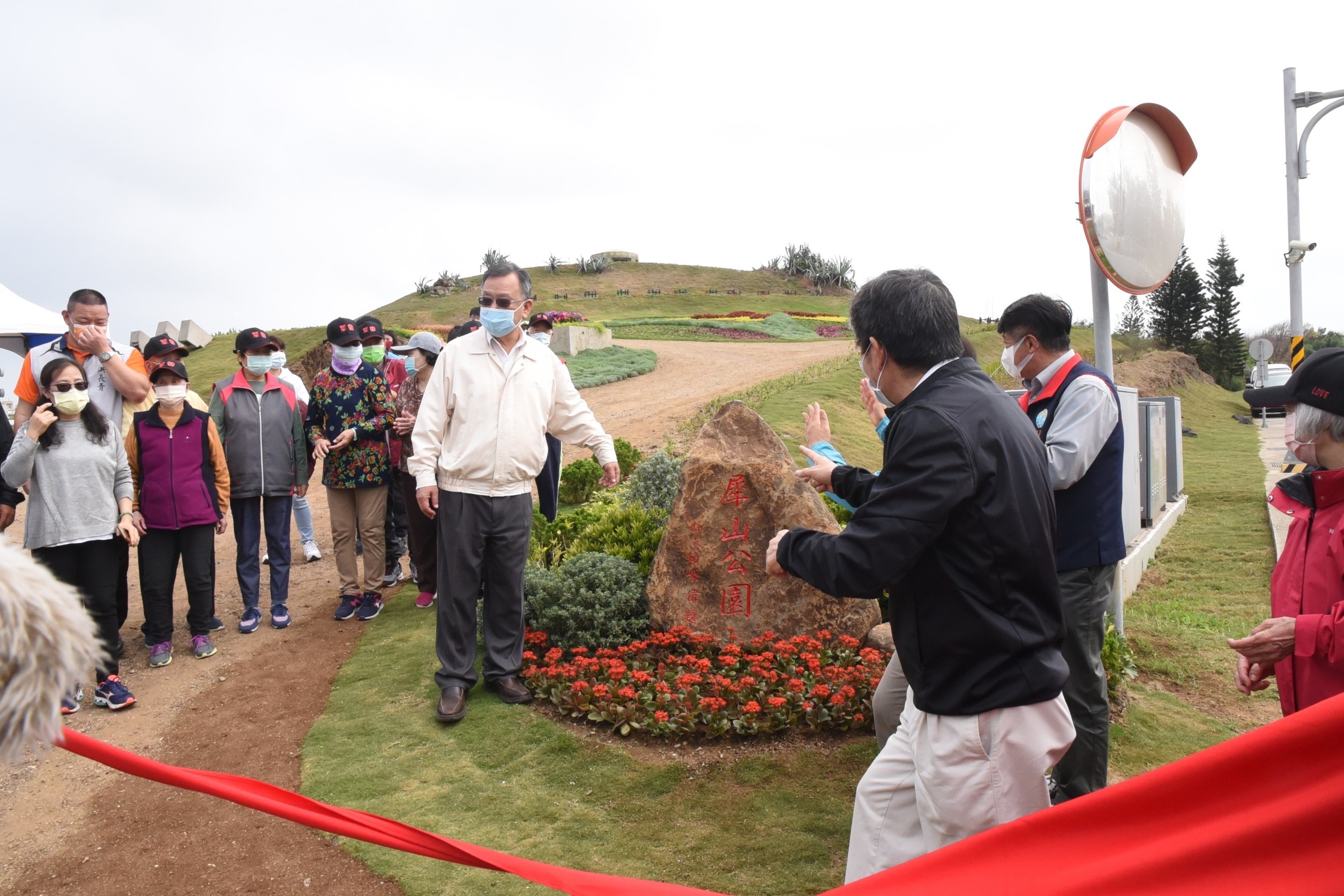 2022年3月16日,澎湖縣長賴峰偉為荒廢軍事碉堡變身的犀山公園開幕揭牌。(圖/澎湖縣政府提供)