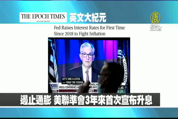 【新唐人亞太台 2022 年 03 月 17 日訊】首先來看到美國大紀元英文版報導:遏止通膨,美國聯準會3年來首次宣布升息。