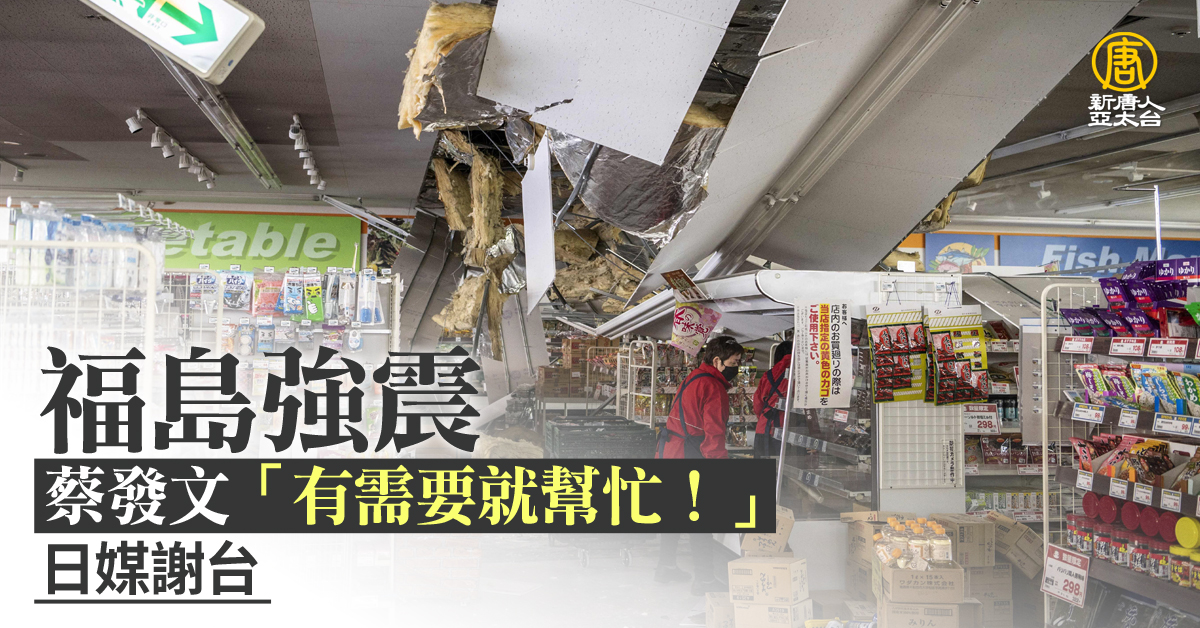 【新唐人亞太台 2022 年 03 月 17 日訊】日本福島7.4地震,中華民國外交部表示,台灣留學生、僑胞都沒有受到影響。而總統蔡英文透過推特用日文寫下「如果日本有任何需要援助的地方,台灣會伸出援手幫忙」。日本媒體也報導轉發蔡英文推特,並以「台灣及時應援」來形容蔡英文的行動。