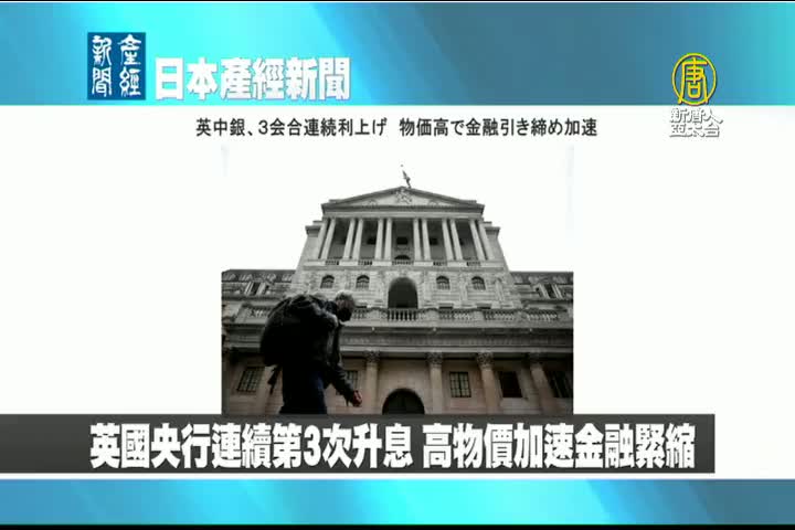 【新唐人亞太台 2022 年 03 月 18 日訊】來看到日本產經新聞報導:英國央行「英格蘭銀行」決議升息1碼,對抗攀升到數十年來高點的通膨。這是英國央行連續第3次升息。
