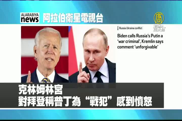 【新唐人亞太台 2022 年 03 月 18 日訊】來看到阿拉伯衛星電視台報導:美國總統拜登稱普丁為戰犯,克里姆林宮回應“不可接受也不可原諒”。