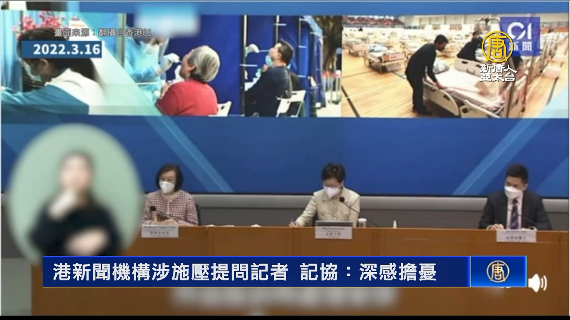 【新唐人亞太台 2022 年 03 月 19 日訊】香港,在國安法實施後,新聞自我審查的現象浮出檯面。日前,一名香港新聞記者在港府記者會上詢問 有關大陸醫護前往香港支援防疫,如果發生醫療事故時的問責處理機制,引發親共媒體大肆批評說這名記者的提問「散播仇恨」,隨後該記者服務的新聞機構竟然發道歉聲明。對此,香港記協表示「深表遺憾,並對有關現象表示憂慮。」