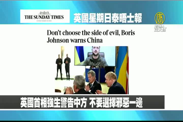 【新唐人亞太台 2022 年 03 月 21 日訊】接著是英國星期日泰晤士報的報導:英國首相強生警告中方,不要選擇邪惡一邊。