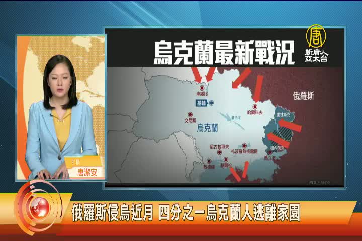 【新唐人亞太台 2022 年 03 月 21 日訊】新聞開始先來關心,俄羅斯入侵烏克蘭將近一個月,聯合國難民事務高級專員公署主管20日表示,烏克蘭目前已有1000萬人逃離自己的家園,相當於烏克蘭超過四分之一的人口。最新戰況,俄羅斯軍隊持續試圖包圍烏克蘭首都基輔,並針對各大重點城市進行遠程打擊。基輔市長克里契科證實,基輔市內波多利斯基區在20日晚間發生爆炸,有4人遇難。另外,俄羅斯要求馬立波棄械投降,但被烏克蘭副總理韋列舒克拒絕。另外,英國國防部表示,俄軍目前仍試圖繞過尼古拉耶夫,試圖往西進軍敖德薩。