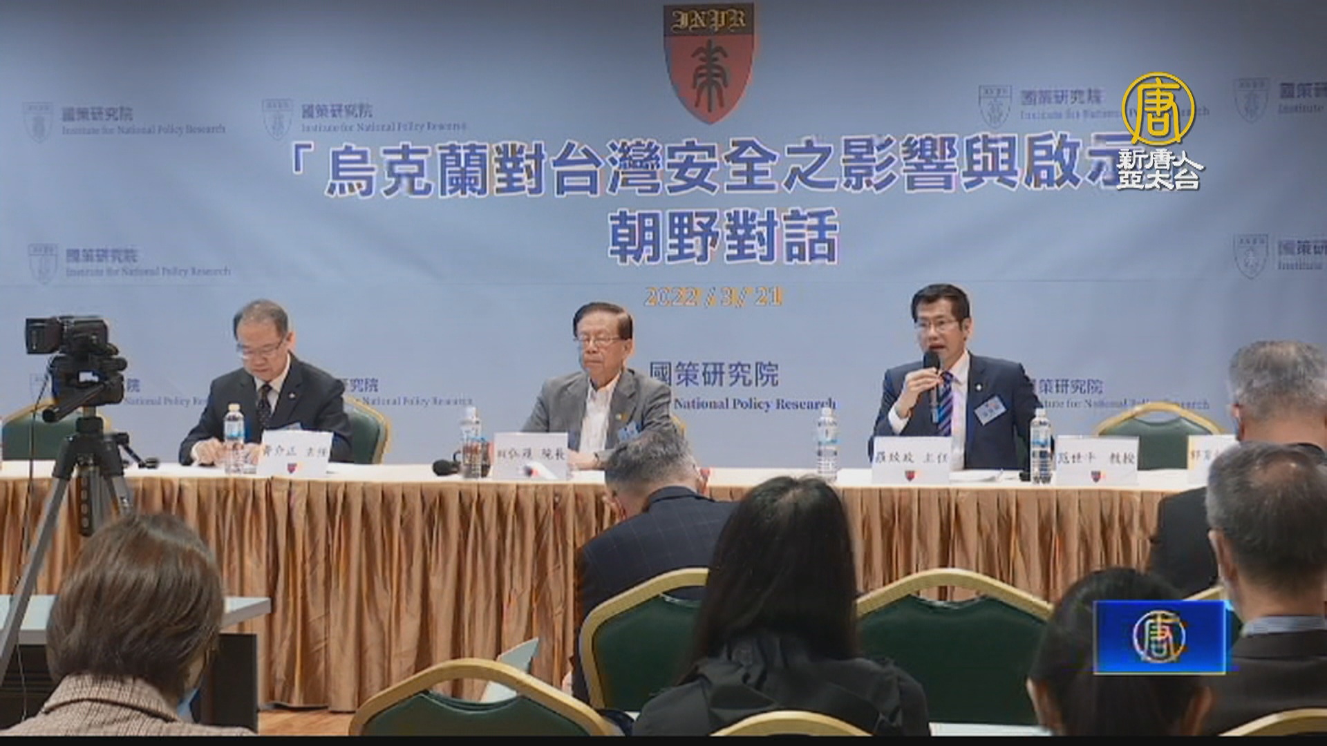 【新唐人亞太台 2022 年 03 月 21 日訊】烏俄戰事陷入僵局,各界也高度關注台灣的處境,國策研究院今天(21日)邀請國民黨國際事務部主任黃介正,及民進黨國際事務主任羅致政進行座談會,兩人都肯定台灣的地位越來越關鍵。黃介正表示,台灣並沒有弱小到讓中共可以無預警的攻打,因此中共要想在秋天犯台相當困難。羅致政表達贊同之外,也主張延長軍事訓練役期,從現行4個月延長到一年,但不認同恢復徵兵制,而是以志願役為主。。
