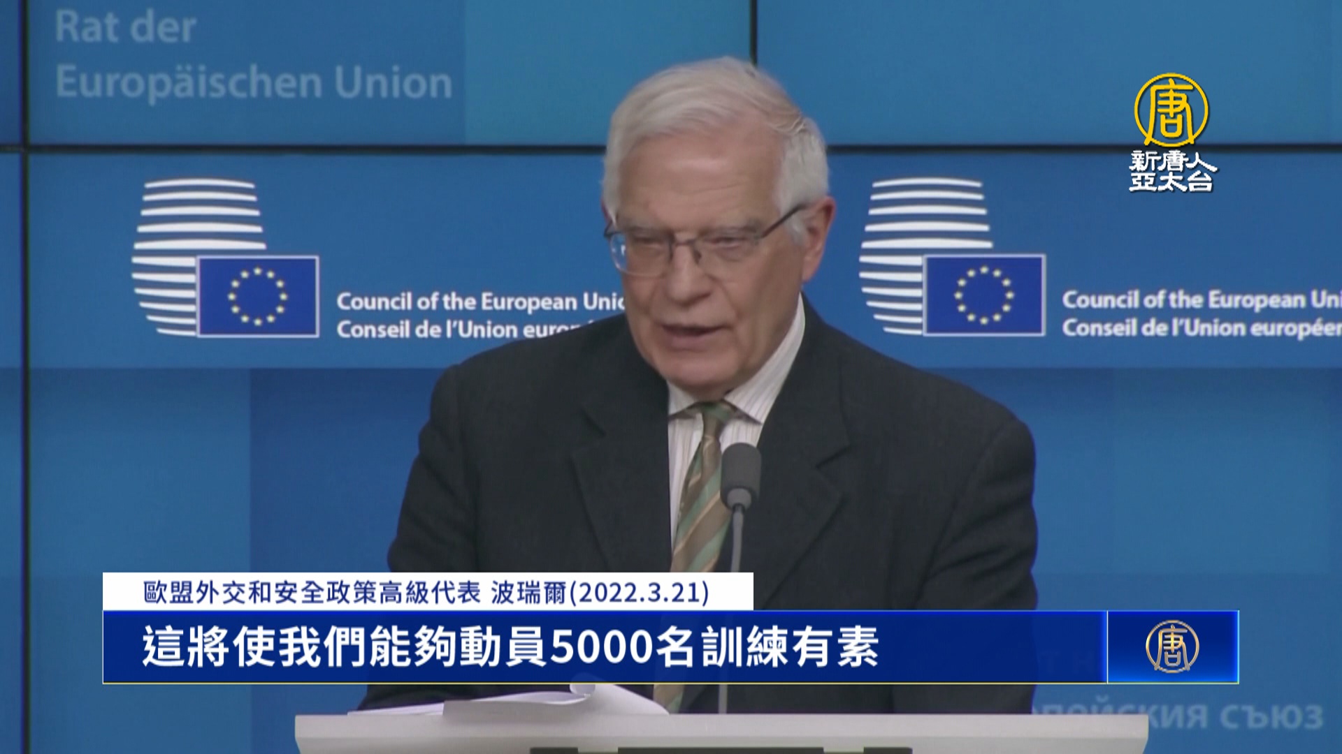 【新唐人亞太台 2022 年 03 月 22 日訊】在俄軍入侵烏克蘭之際,21號,歐盟理事會正式批准了歐盟新的安全戰略,也就是「戰略指南」,其中包括建立一支由5000名士兵組成的「歐盟快速部署能力」部隊。
