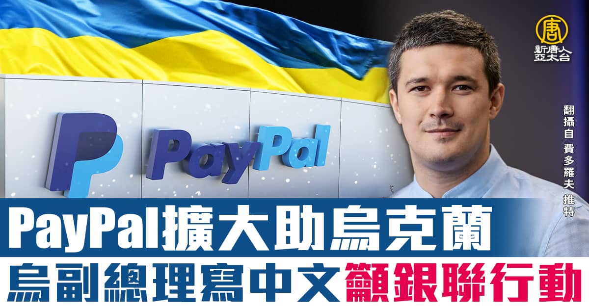 PayPal擴大助烏克蘭 烏副總理寫中文籲銀聯行動