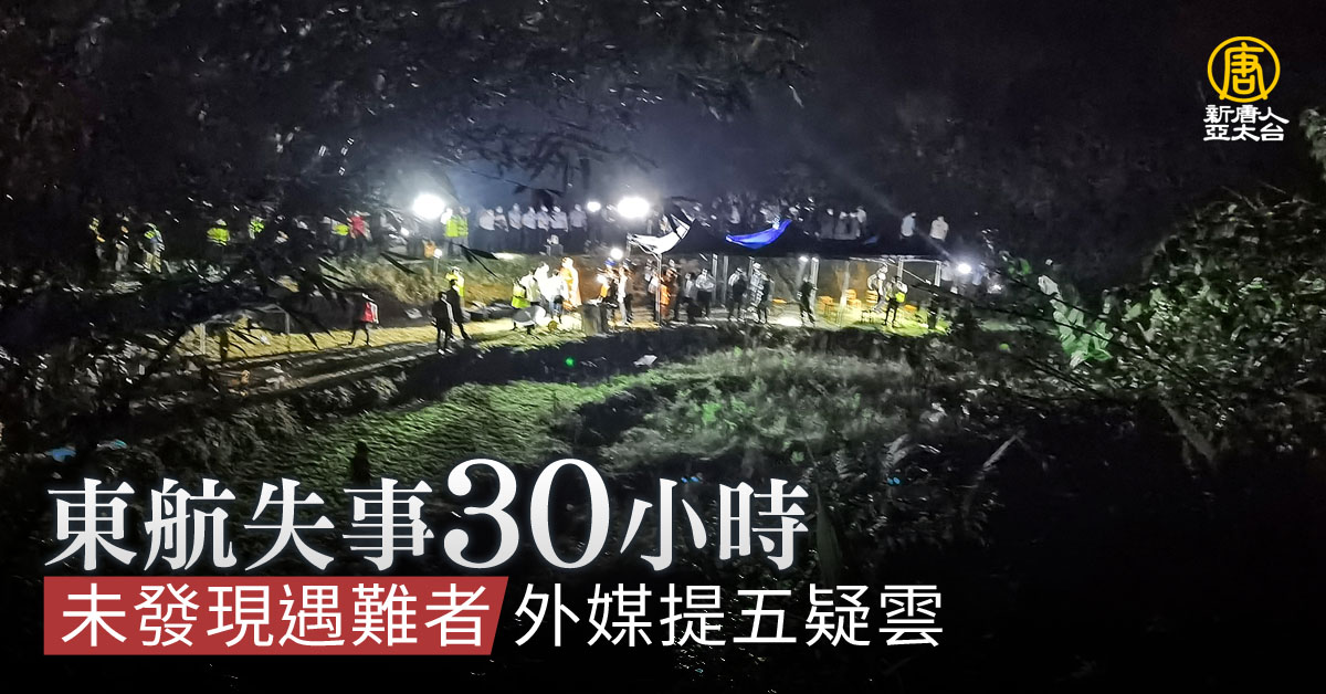 山坡陡地,到處是散落的機身殘骸,這架失事的中國東方航空客機,上面搭載9名機組員和123名旅客,但事發超過30個小時,中共官方至今沒有發布任何罹難者或倖存者的消息,甚至沒召開任何一場記者會說明。