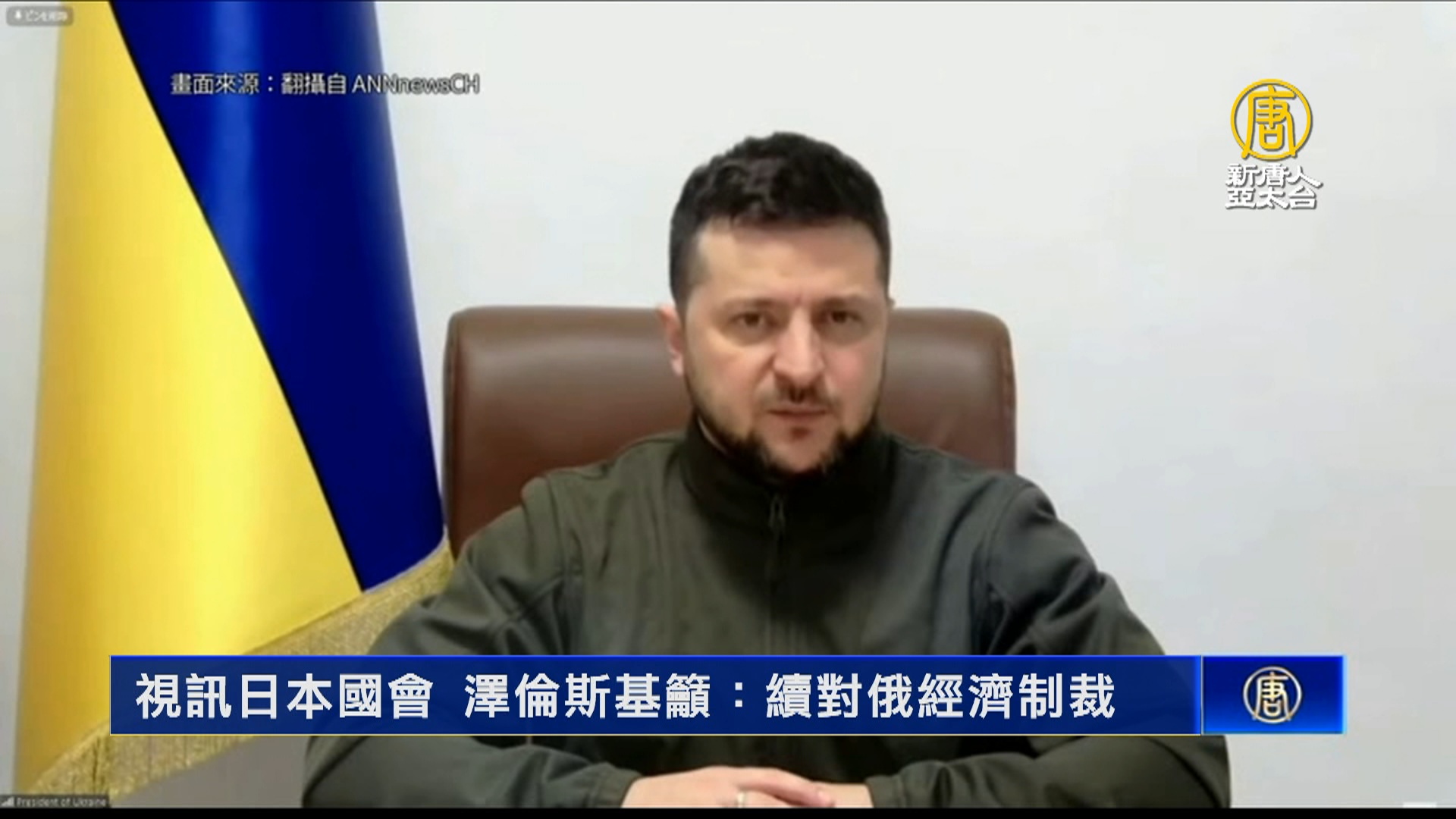 【新唐人亞太台 2022 年 03 月 23 日訊】接著來看到,台灣時間傍晚5點,烏克蘭總統澤倫斯基透過視訊,在日本國會舉行演說,不但是亞洲第一個國家,也是日本首次有外國政要在國會透過連線發表演說。澤倫斯基除了感謝日本在第一時間向烏克蘭伸出援手,也強調「亞洲第一個開始對俄羅斯施壓的就是日本」,呼籲日本繼續對俄羅斯進行制裁。