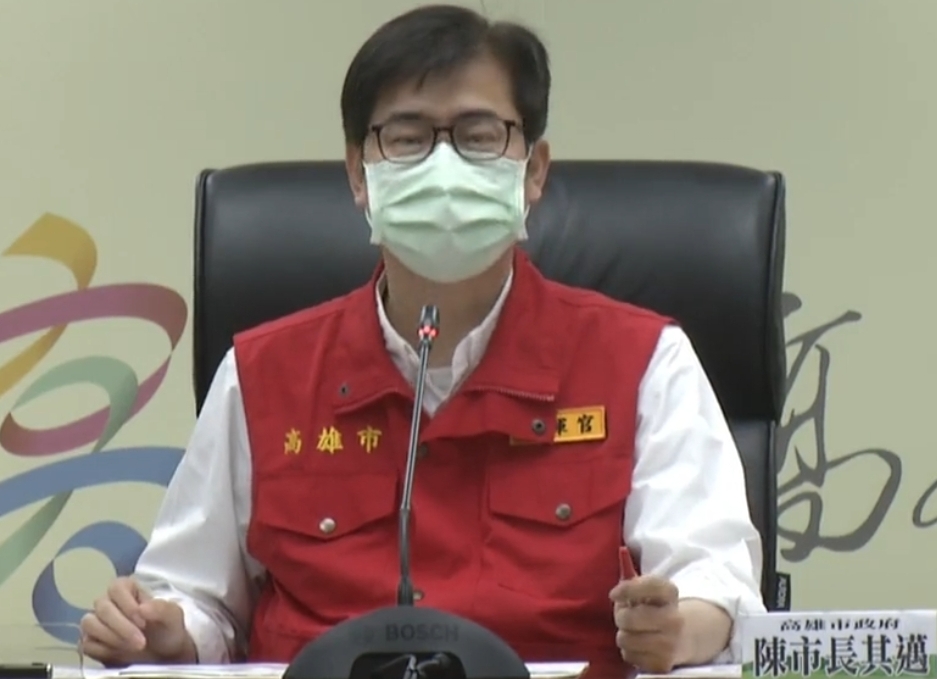 高雄市長陳其邁(圖)24日上午舉行記者會宣布, 高雄新增13例本土病例,包括一名某高中生,而這名高中生的同班同學與教師共42人都陰性。(圖/翻攝自陳其邁臉書)