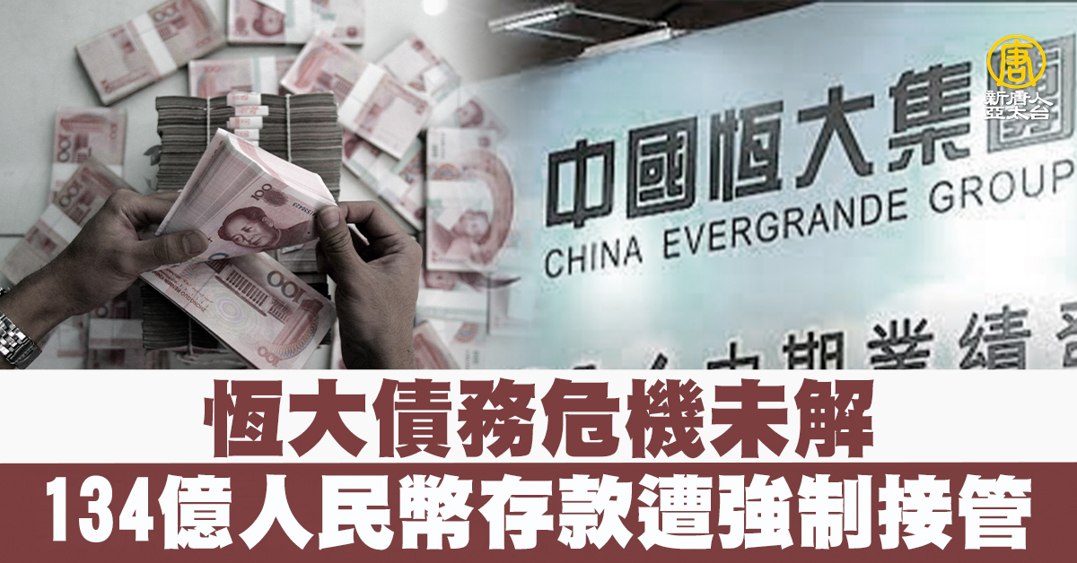 恆大債務危機未解 134億人民幣存款遭強制接管